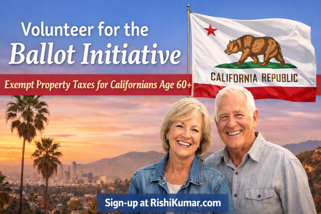 Rishi Kumar is thrilled to announce the property tax exemption update: We have officially submitted “The 60+ property tax Exemption Act of 2026” #25-0035 ballot measure to the California Attorney General — a critical step has been completed. Our goal is to place the measure on the ballot for a November 2026 California vote. Once passed, every California resident age 60 and older automatically qualifies for a property tax exemption, with age as the only (major) requirement.